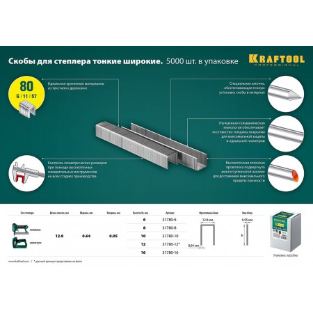 Скобы Kraftool изготовлены из закаленной проволоки с использованием новейших технологий специально для промышленного и профессионального применения.