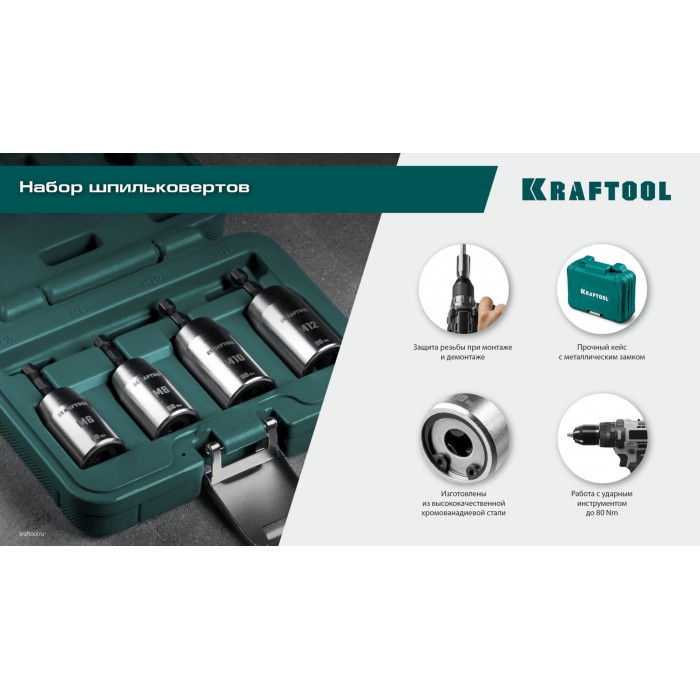 Набор профессиональных ударных шпильковёртов для установки и демонтажа резьбовых шпилек