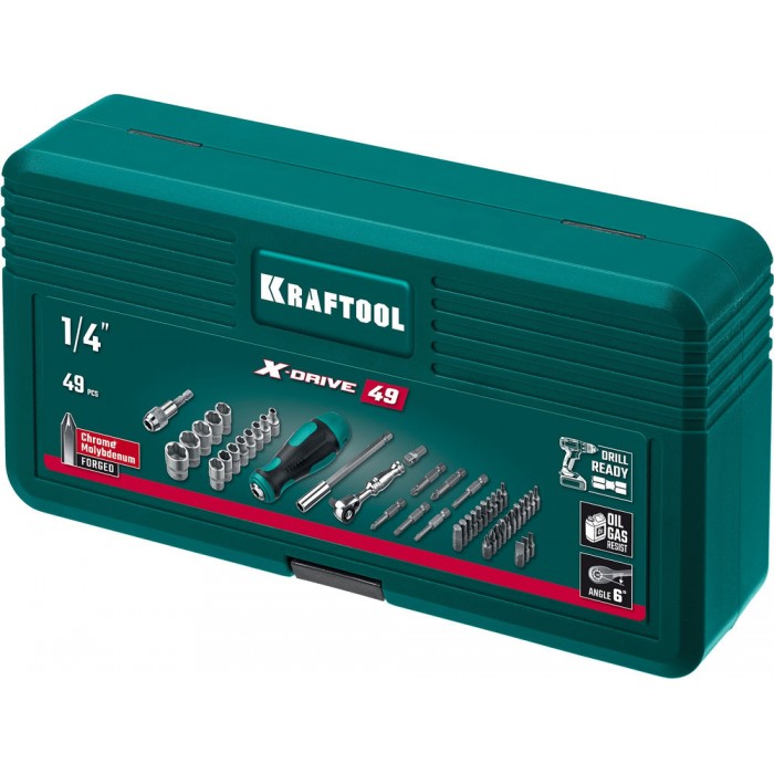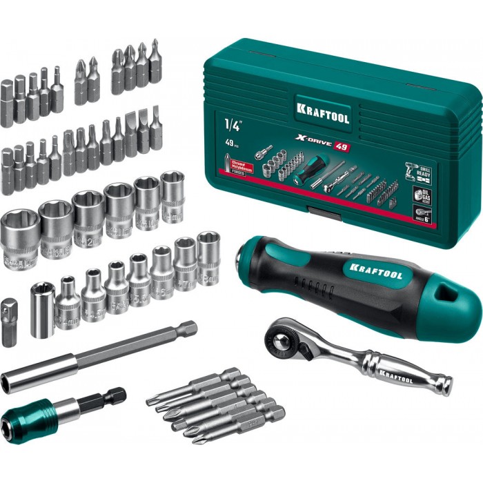 Набор бит и головок с битодержателем и трещоткой X-Drive-49, 49 шт KRAFTOOL 25816