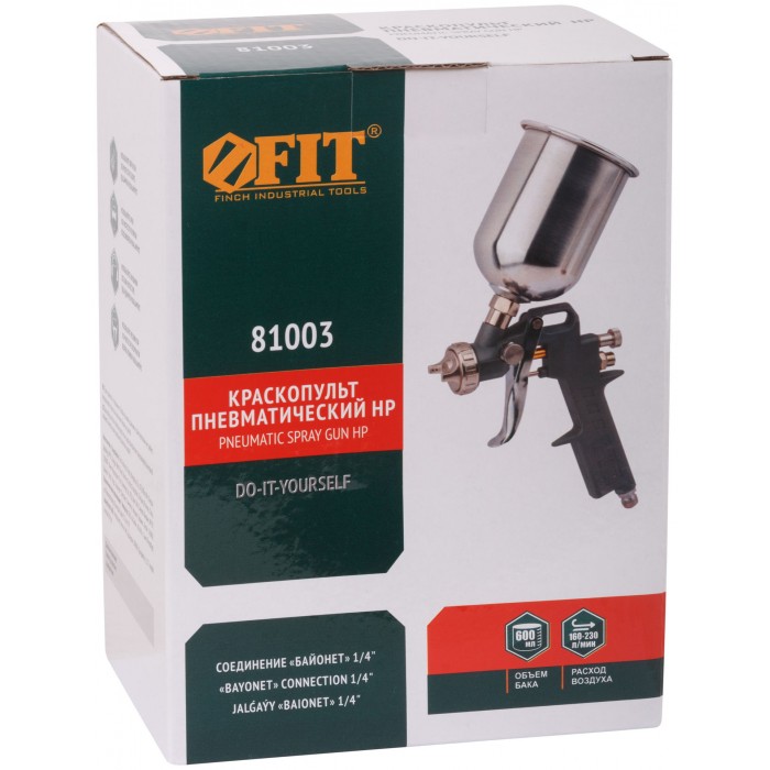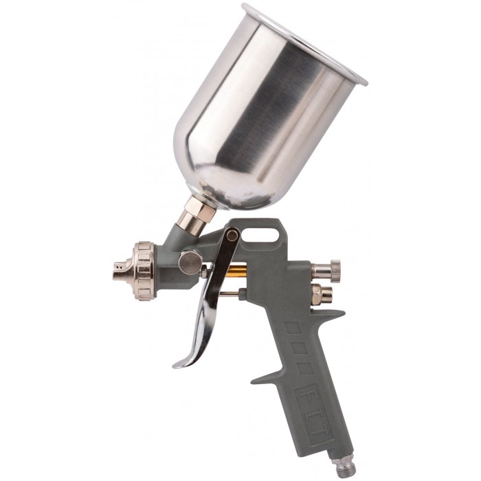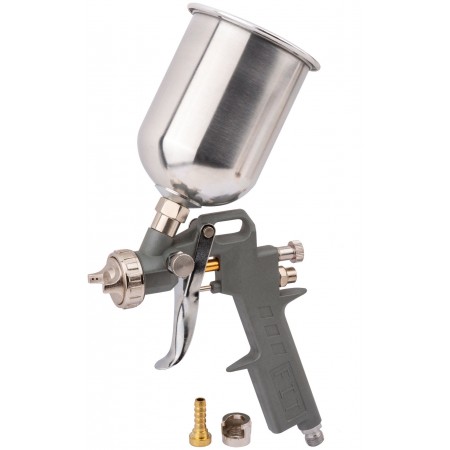 Краскопульт пневматический, 600 мл; 1,5 мм; расход воздуха 160-230 л/мин; рабочее давление 3,5-5 бар; ширина факела 110-240 мм. Материал алюминий. Для пневмокомпрессора. Соединение байонет. С алюминиевым верхним бачком. Возможность регулировки: факела, расхода краски.Используется с: водоэмульсионными красками, синтетическими эмалями, полиуретановыми эмалями, эпоксидными эмалями, нитроэмалями, лаками.