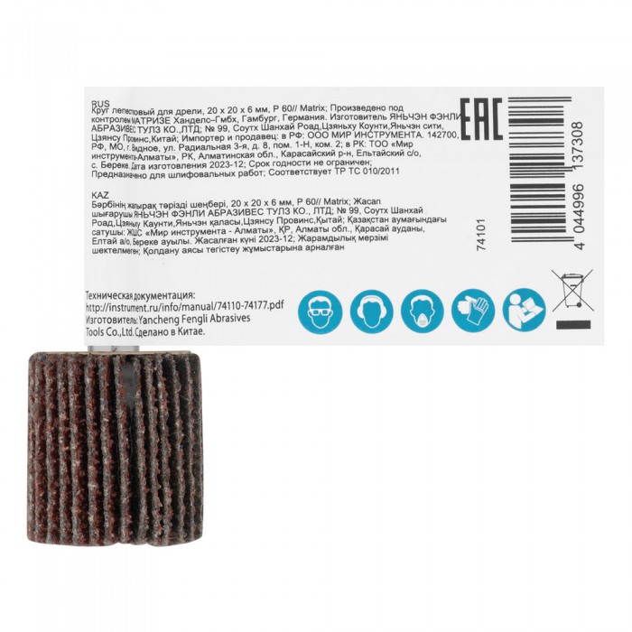 Круг лепестковый для дрели, 20 х 20 х 6 мм, P 60 Matrix (74101)