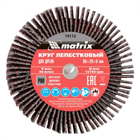 Круг лепестковый для дрели, 60 х 20 х 6 мм, P 60 Matrix (74112)
