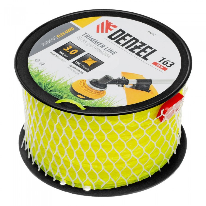 Леска для триммера витой квадрат, 3,0мм х 163м, на DIN катушке FLEX CORD Denzel (96802)