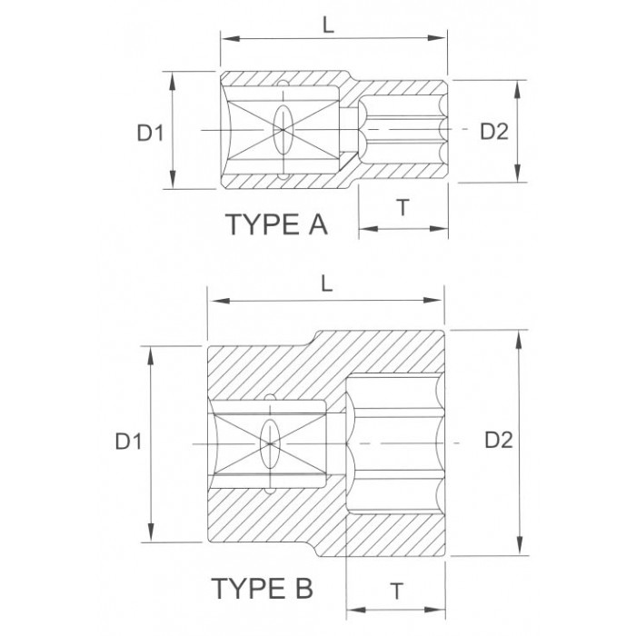 Тип головки - внутренний шестигранник (Hex). Размер - 21 мм. Размер привода — 1/2 дюйма (12,7 мм).