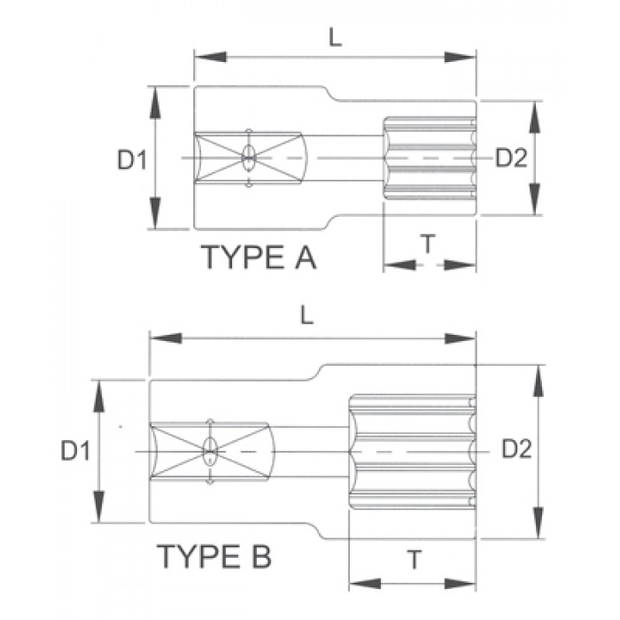 Тип головки - Spline. Размер - 9 мм. Размер привода — 3/8 дюйма (9,53 мм).
