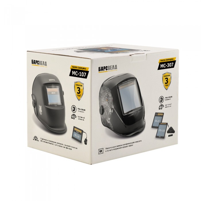 Маска БАРСВЕЛД МС 107 способна обеспечить полную безопасность при проведении практически любых типов сварки при температуре окружающей среды от -10 до +60 оС. Сварщик полностью защищен от брызг, искр, излучений в процессе сварки. Маска поставляется в красивой индивидуальной упаковке. Сразу в комплекте два запасных защитных стекла из поликарбоната (одно внутреннее, второе внешнее). Сертифицированное и качественное оборудование – доказательство профессионализма и уверенности в своих возможностях!