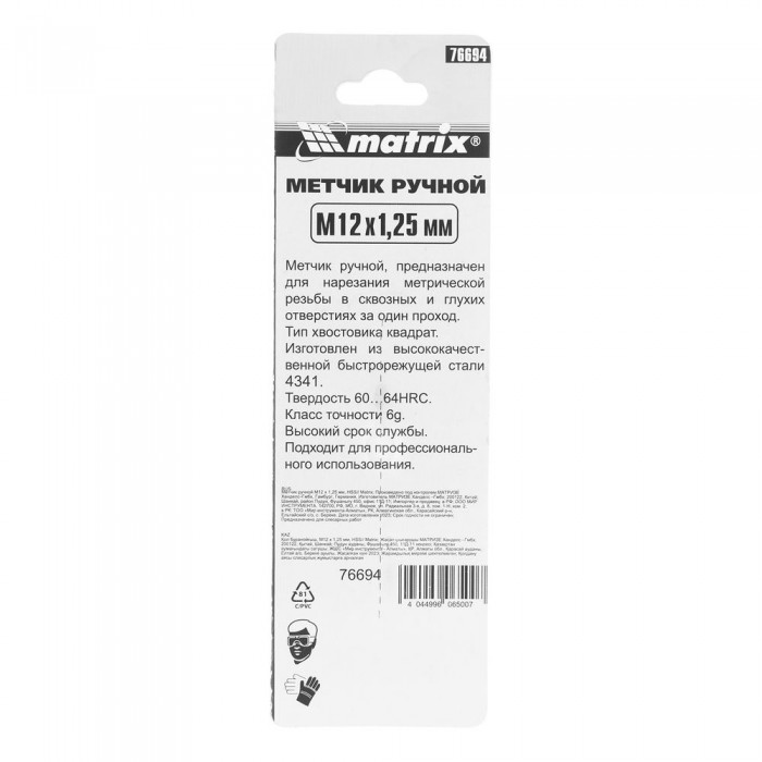 Метчик ручной М12 х 1.25 мм, Р6М5 Matrix (76694)
