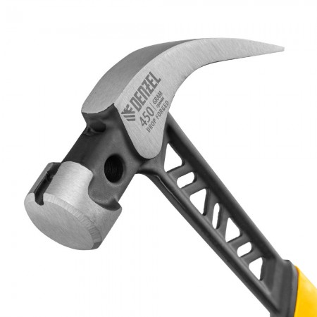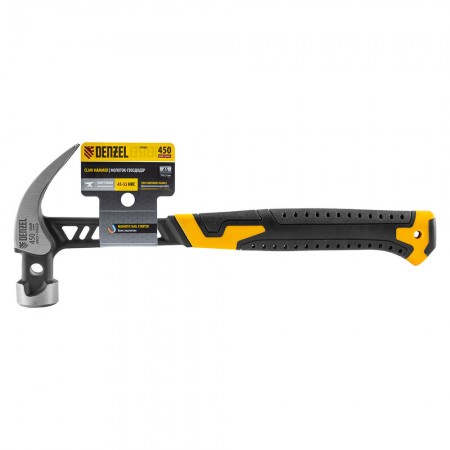 Молоток-гвоздодер 450 г, цельнокованый,боек с магнитом, двухкомп. обрезин. рук-ка Denzel (10466)