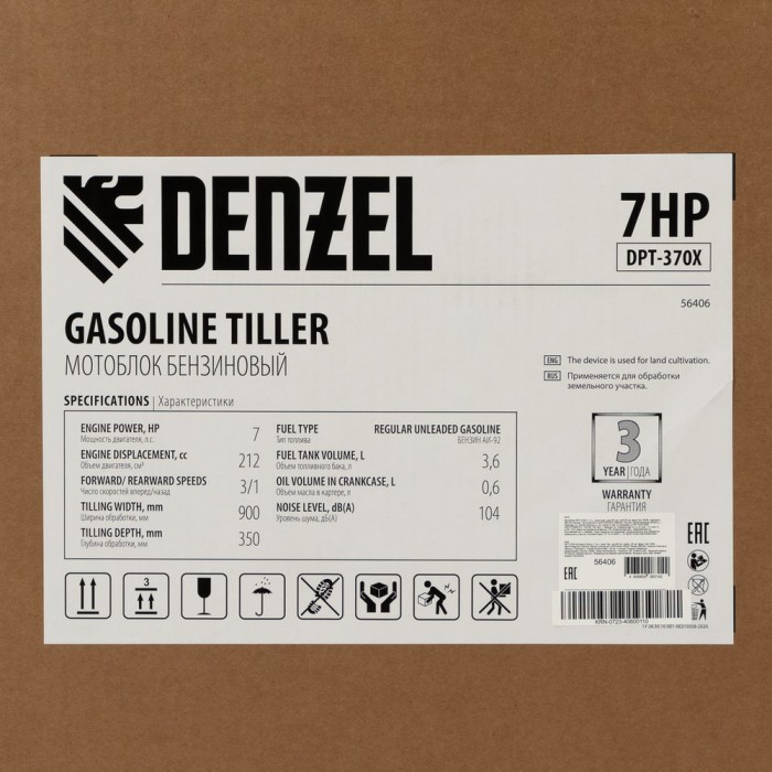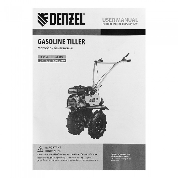 Мотоблок DPT-370X, 7 л.с, дисковое сцепление, ширина 90 см, глубина 35 см, фрез 3 х 4, ВОМ, передачи 3В/1Н Denzel (56406)