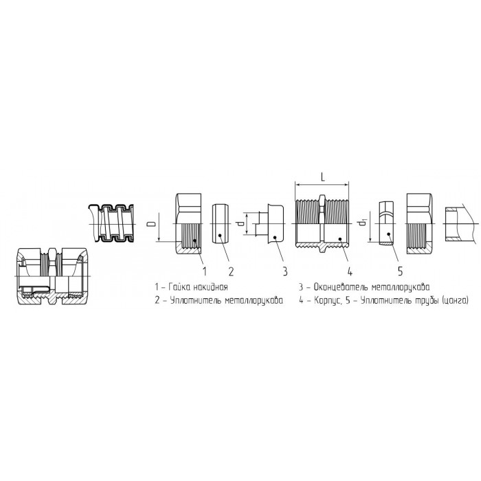 Назначение Герметичное соединение металлорукава номинальным диаметром 32 мм с трубой 1 1/4"