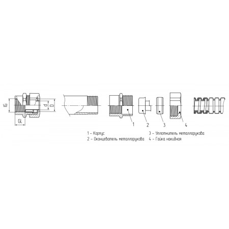 Назначение Герметичное соединение металлорукава номинальным диаметром 15 мм и трубы с наружной резьбой 1 1/4"