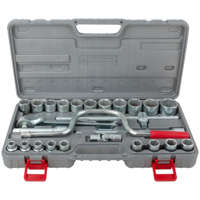 «Всё для автомобиля». Комплектация: вороток трещоточый 1/2” х 250 мм, переходник шарнирный 1/2”, вороток-рычаг с присоединительным квадратом 1/2”, удлинитель 1/2”x125 мм , удлинитель 1/2”x250 мм , головки шестигранные 1/2” 10-12-13-14-15-16-17-18-19-20-21-22-23-24-25-26-27-28-30-32 мм. Материал: износоустойчивая конструкционная легированная сталь. Упаковка: пластиковый чемодан.