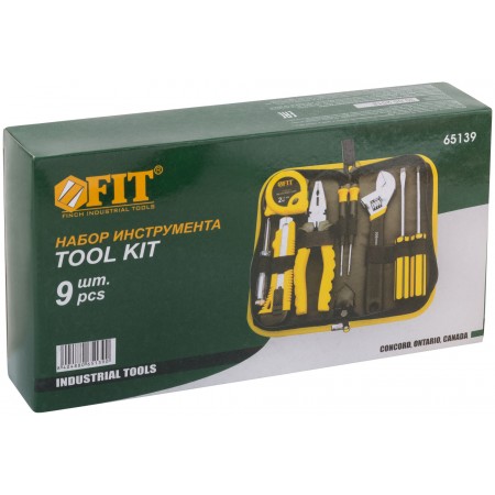 В наборе: рулетка 2 м х13 мм; нож технический; пассатижи; ключ разводной; индикаторная отвёртка; 2 отвёртки (SL6x100 мм, PH2х100 мм); 2 отвёртки для точных работ (SL2.4 мм, PH0). Материал: усиленная инструментальная сталь, нейлоновая сумка. Упаковка: матерчатый чехол.