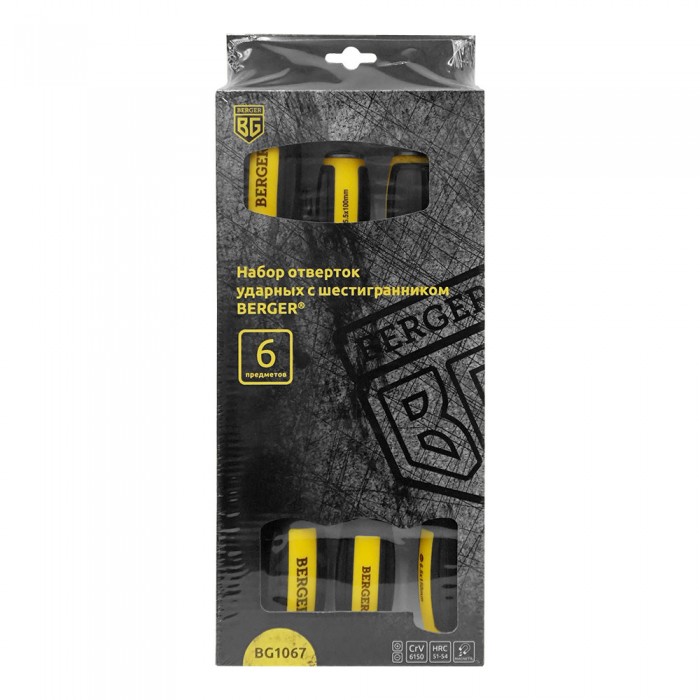 Набор отверток ударных с шестигранником 6 предметов BERGER
