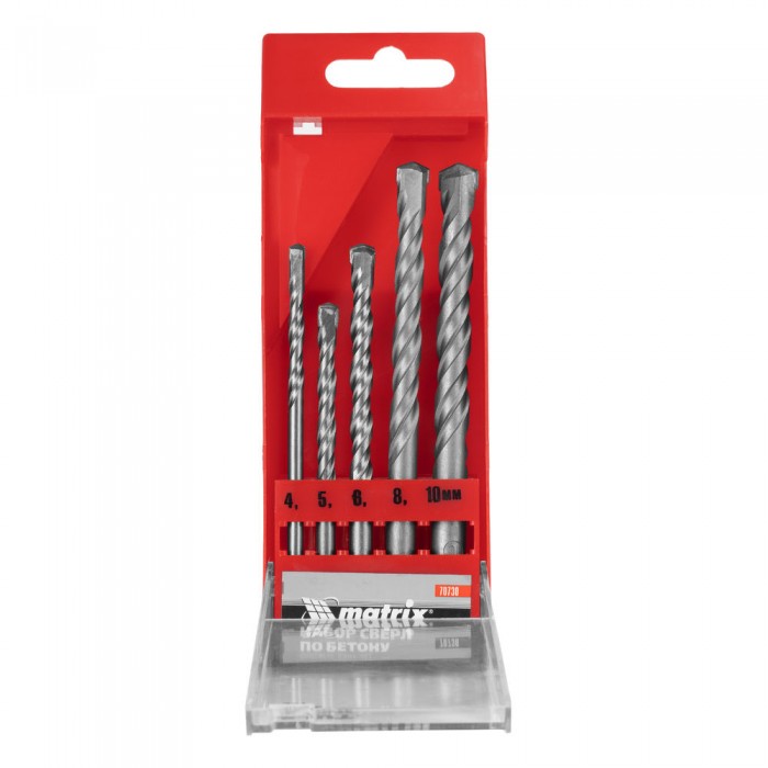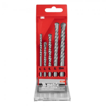 Набор сверл по бетону, 4-5-6-8-10 мм, пластиковый кейс, Matrix (70730)