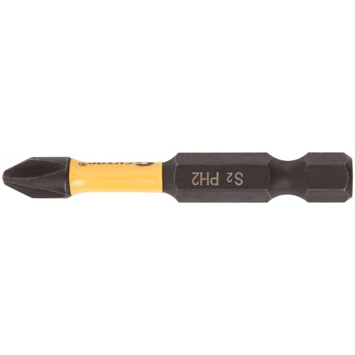 Торсионная бита за счет эффекта скручивания способна к работе на высоких крутящих моментах, что способствует сохранению шлица биты, крепежа и увеличенному сроку службы. Намагниченный шлиц PH2 обеспечивает дополнительное удобство в работе, а также предотвращает выскальзывание, что препятствует повреждению биты и крепежа. Биты изготавливаются из стали высшего качества марки S2 по технологии Cutop, что обеспечивает увеличенный срок службы. Биты выдерживают существенный крутящий момент, что подтверждается собственными испытаниями. Упаковка: блистер.