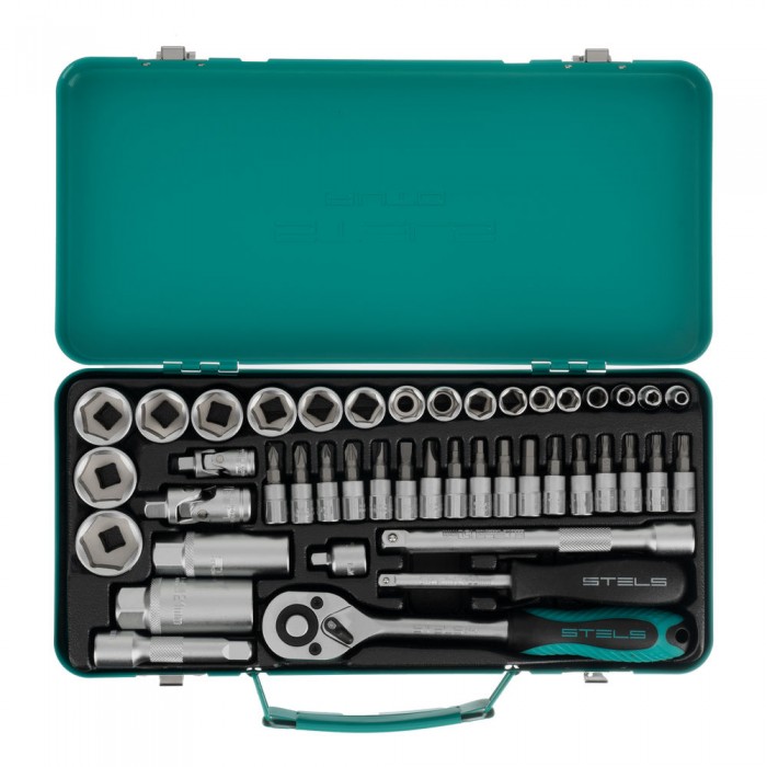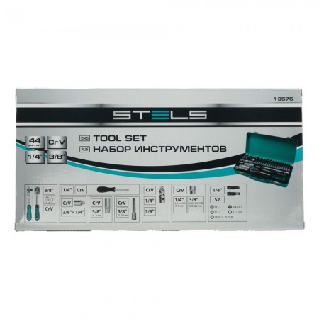 Набор торцевых головок с трещоткой, 1/4"и 3/8", 44 предмета Stels