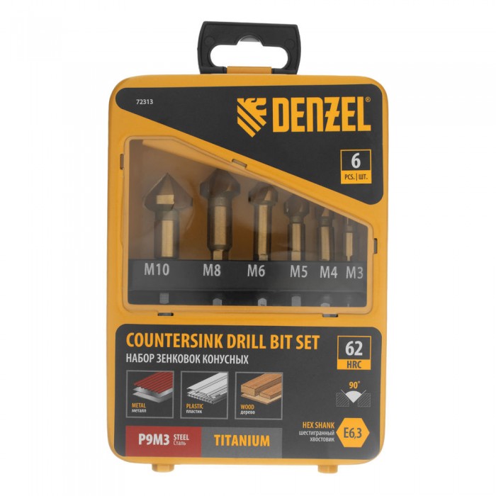 Набор зенковок, HSS, M3-M10, 6 шт, металл. кейс // Denzel (72313)