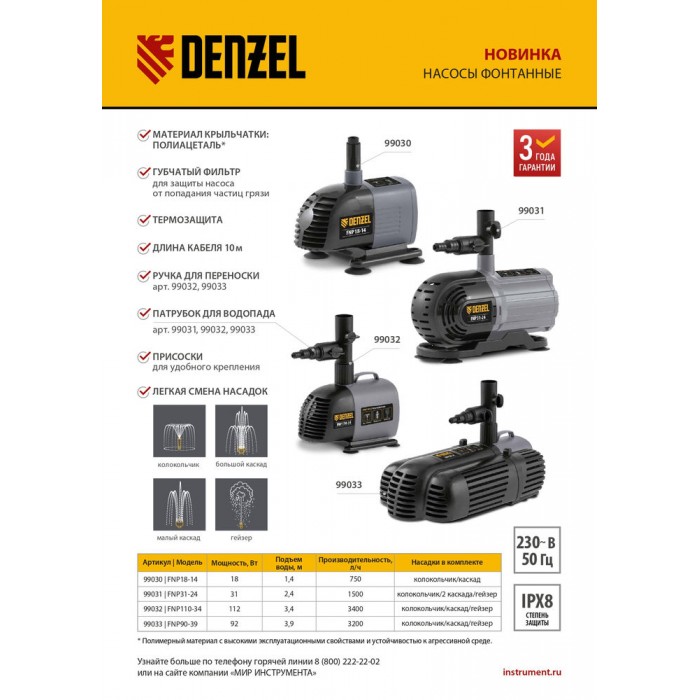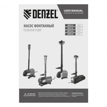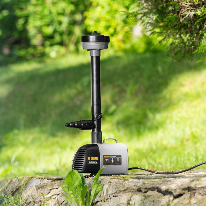 Насос фонтанный FNP110-34, 112 Вт, подъем 3,4 м, 3400 л/ч, колокольчик/каскад/гейзер Denzel (99032)