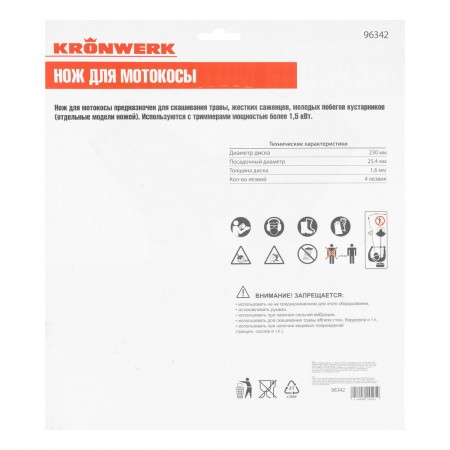 Нож для триммера 230х25,4, 4 лезвия Kronwerk (96342)