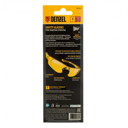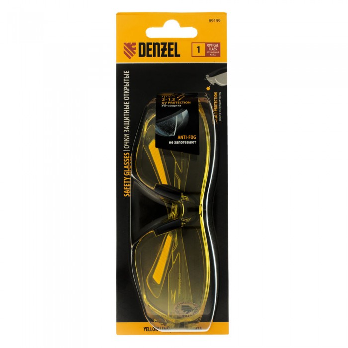 Очки защитные открытые, поликарбонатные, желтая линза Denzel (89199)