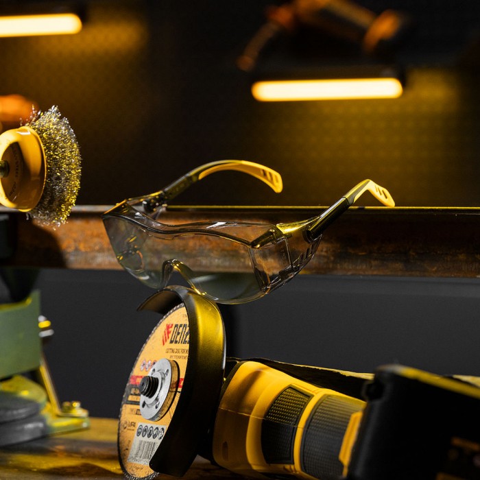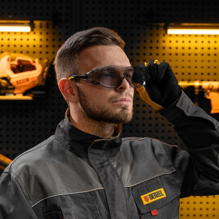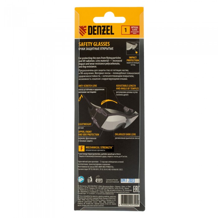 Очки защитные открытые, поликарбонатные, увеличенная дымчатая линза, регулируемые дужки Denzel (89203)