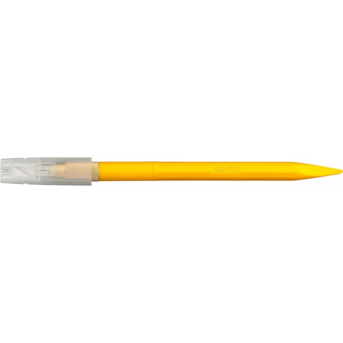 Дизайнерский нож OLFA AK-5 имеет компактную и легкую конструкцию с наконечником в форме шпателя. В комплект входит 30 сменных лезвий, а также игла для проколов. Заостренное основание ручки расширяет возможности применения ножа для рукоделия: тиснение, точные складки и надрезы, а также разглаживание клейких материалов. Используйте квадратный футляр для лезвий в качестве подставки для ножа, а также для транспортировки, хранения новых лезвий и утилизации использованных. Цанговый зажим позволяет удобно удерживать нож в руке и легко заменять лезвия. Добавьте художественный нож OLFA к своим инструментам, чтобы создавать миниатюры.