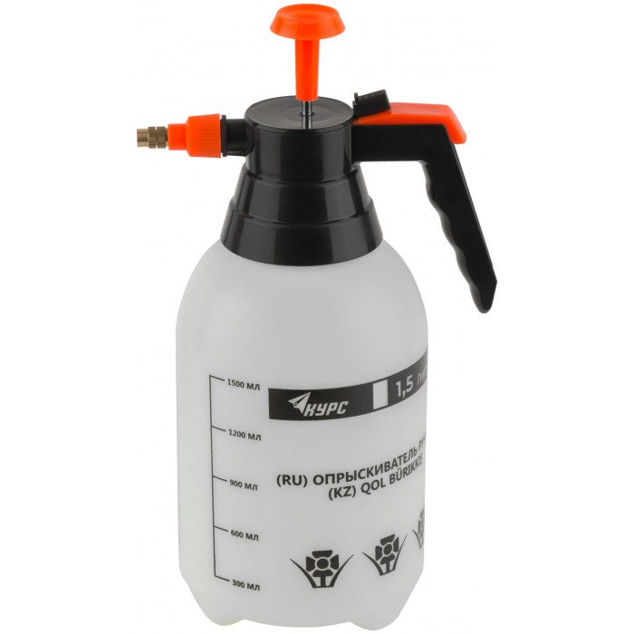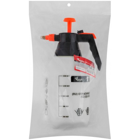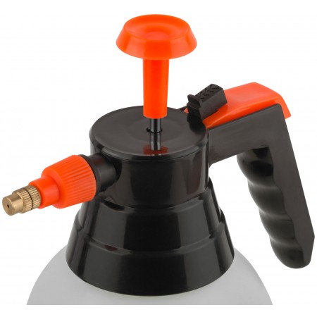 Для распыления различных жидкостей. Встроенный в крышку насос для создания рабочего давления. Степень распыления регулируется повором сопла. Материал: пластиковый корпус, латунное сопло.