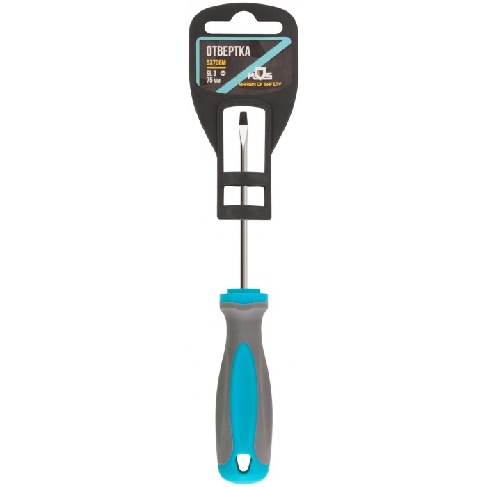 Отвертка, CrV сталь, прорезиненная ручка SL3 x 75 мм (53706М)