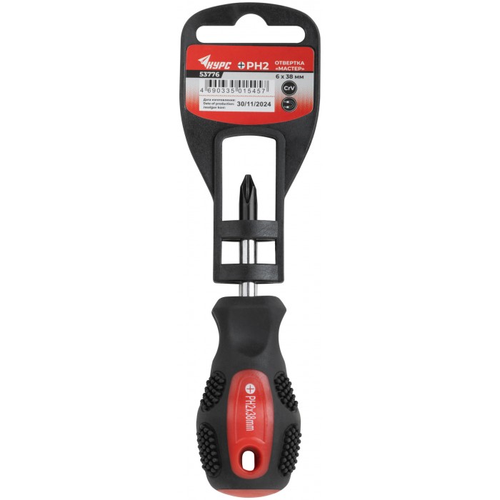 Отвертка "Мастер", CrV сталь, прорезиненная ручка 6х38 мм РН2 (53776)