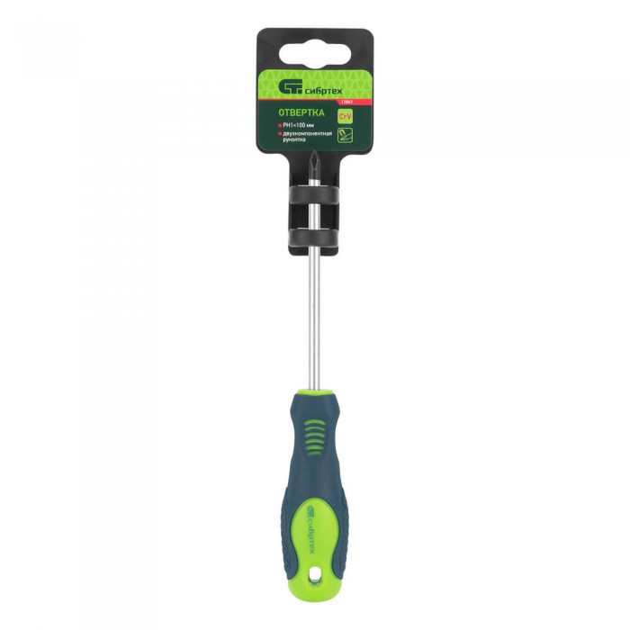 Отвертка, PH1 х 100 мм, CrV, двухкомпонентная рукоятка Сибртех