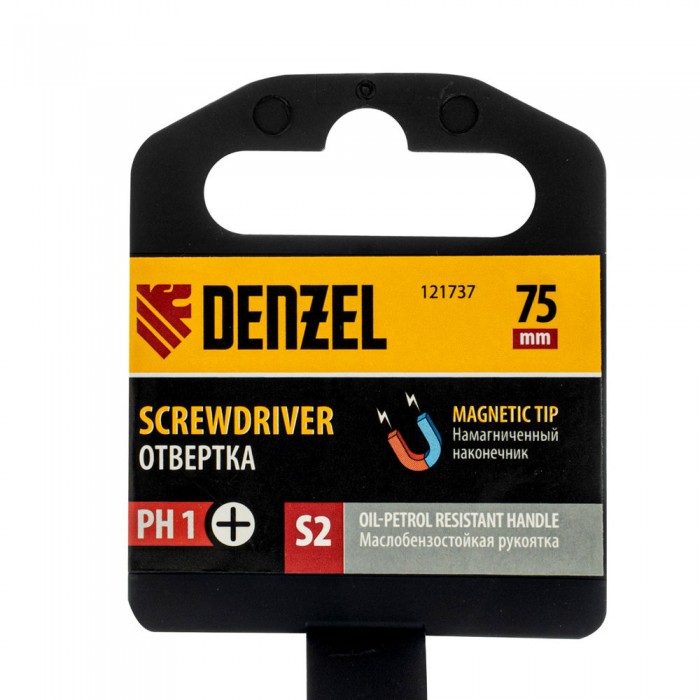 Отвертка, PH1х75 мм, S2, 3к рукоятка Denzel (121737)