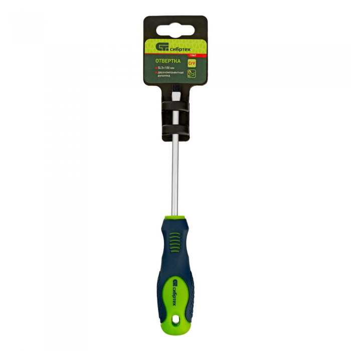 Отвертка, SL5 х 100 мм, CrV, двухкомпонентная рукоятка Сибртех