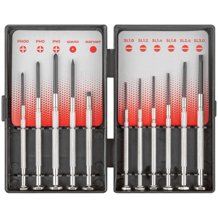 Шило; магнит; SL 1.0, 1.2, 1.4, 1.8, 2.4, 3.0; PH 00, 0, 1. Материал: инструментальная сталь. Упаковка: блистер.