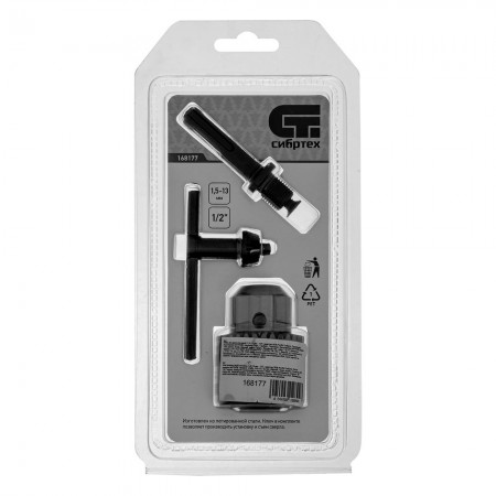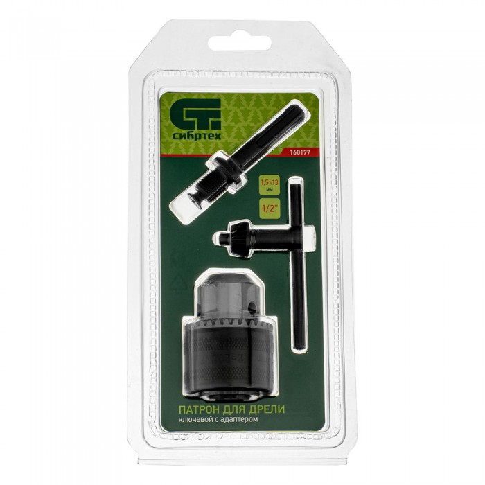 Патрон для дрели ключевой, 1.5-13 мм, 1/2, адаптер SDS Plus Сибртех (168177)