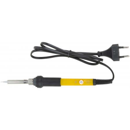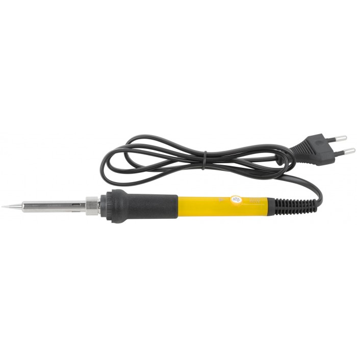 220 В. Со световым индикатором и регулировкой температуры от 200 °С до 450 °С. Материал: керамический нагревательный элемент, жало из латуни с хромированным покрытием, трубка из нержавеющей стали, пластиковая ручка с резиновой накладкой. Упаковка: блистер.