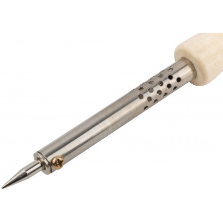 220 В. Материал: инструментальная сталь, деревянная ручка, сменное медное жало с долговечным покрытием. Упаковка: блистер.