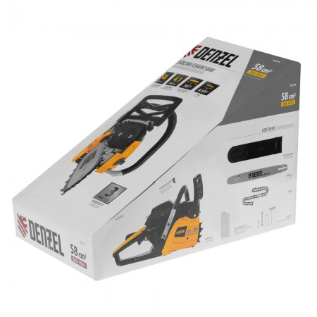 Пила цепная бензиновая DGS-5820, шина 50 см, 58 см3, 4.1 л.с, шаг 0.325, паз 1.5 мм, 76 звеньев Denzel (95235)