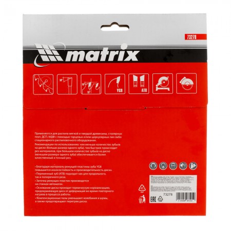 Пильный диск по дереву, 185 х 20 мм, 36 зубьев, кольцо 16/20 Matrix Professional (73278)