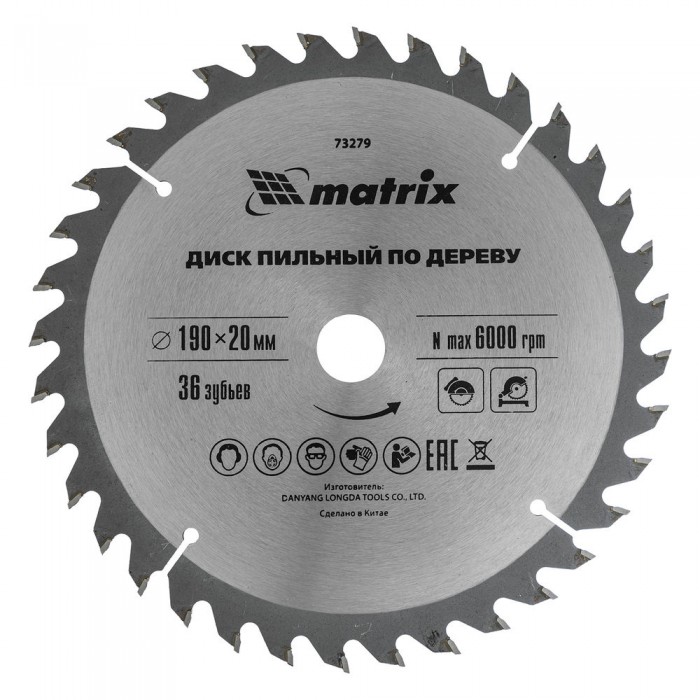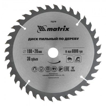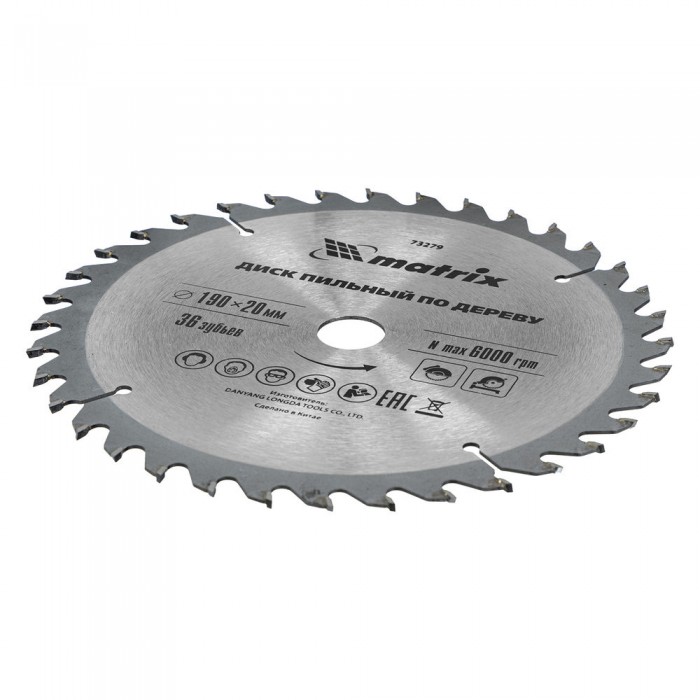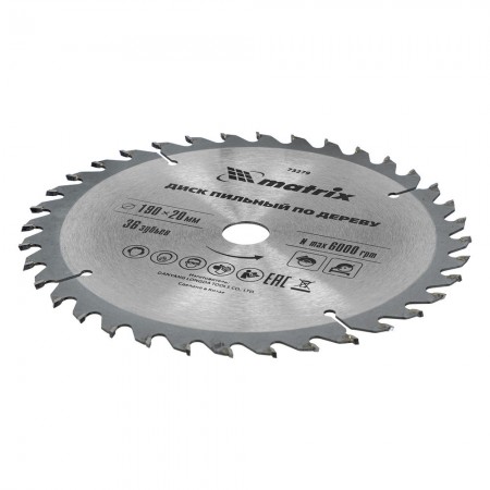 Пильный диск по дереву, 190 х 20 мм, 36 зубьев, кольцо 16/20 Matrix Professional (73279)