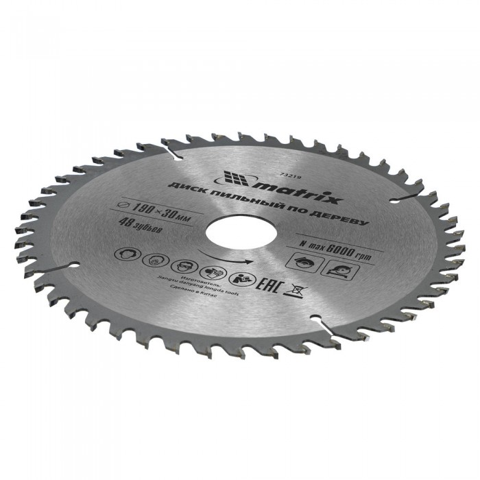 Пильный диск по дереву, 190 х 30 мм, 48 зубьев Matrix Professional (73219)
