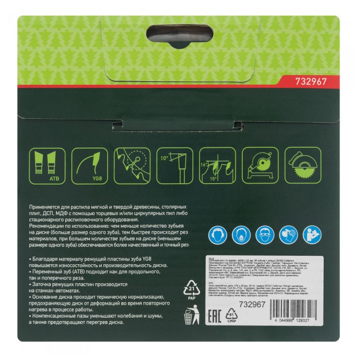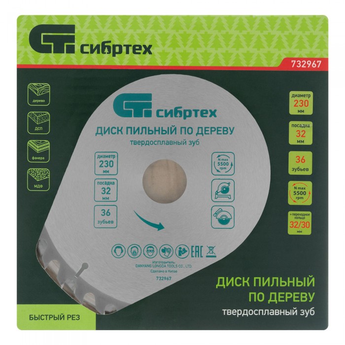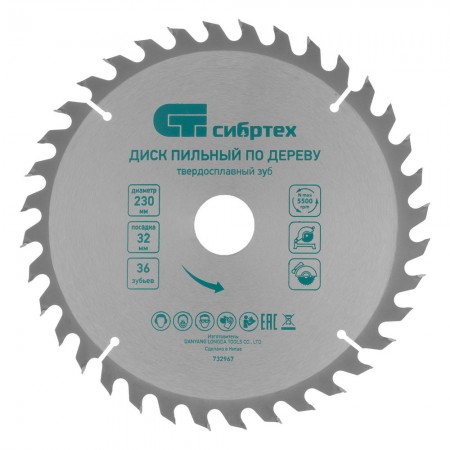 Пильный диск по дереву, 230 х 32 мм, 36 зубьев, кольцо 30/32 Сибртех (732967)