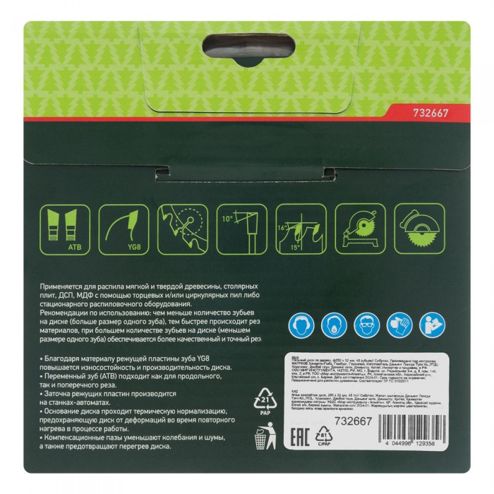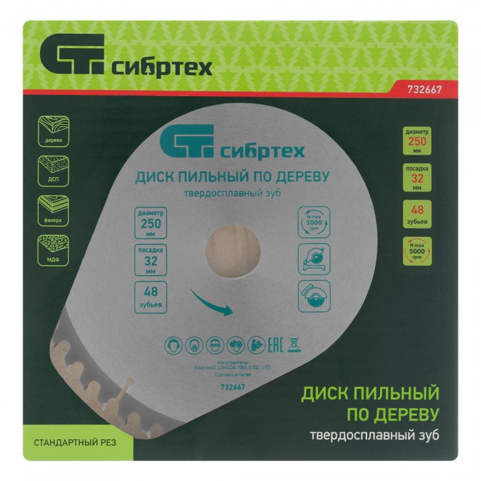 Пильный диск по дереву, 250 х 32 мм, 48 зубьев Сибртех (732667)