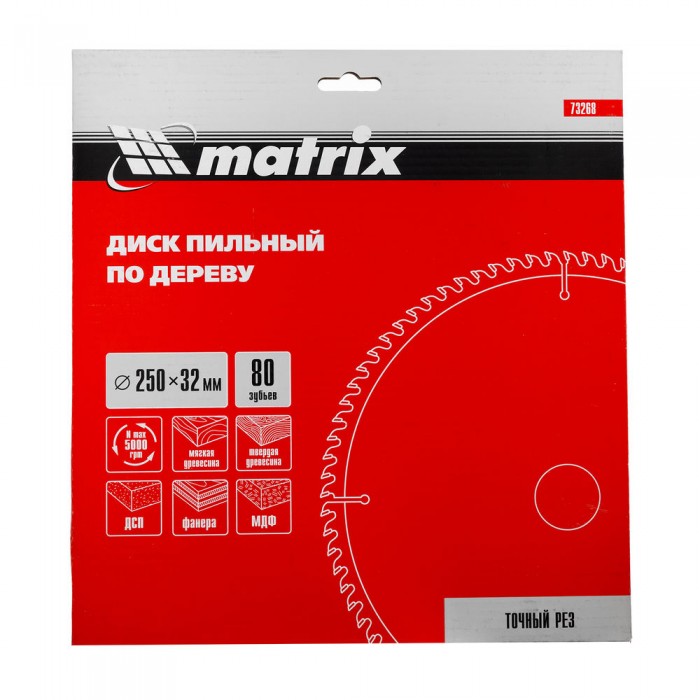 Пильный диск по дереву, 250 х 32 мм, 80 зубьев Matrix Professional (73268)
