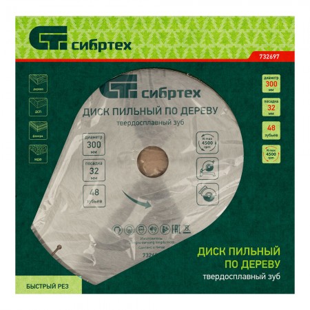 Пильный диск по дереву, 300 х 32 мм, 48 зубьев Сибртех (732697)