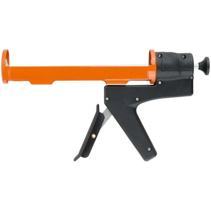 С противовесом. Удобен при длительной работе. Для выдавливания герметика из стандартной емкости 310 мл. Противокапельная система. Материал: инструментальная сталь, ручка из ударопрочного ABS пластика.