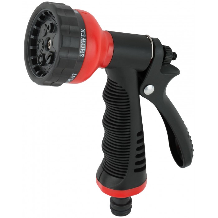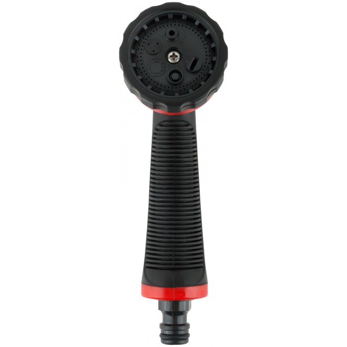 6 режимов распыления. Скоба-фиксатор для непрерывной подачи воды. Универсальное быстросъемное соединение. Материал: пластиковый корпус, обрезиненная ручка. Упаковка: блистер.