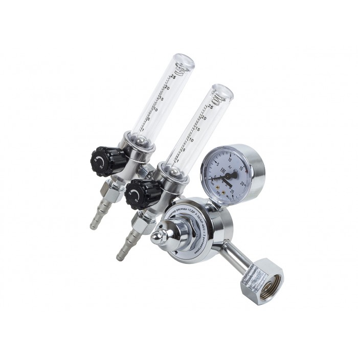 Регулятор расхода КЕДР У-30/АР-40/2 с 2 ротаметрами предназначен для понижения давления защитного газа, подаваемого из магистрали или баллона, и поддержания постоянного заданного расхода при питании постов сварочного оборудования для MIG/MAG и TIG-сварки.