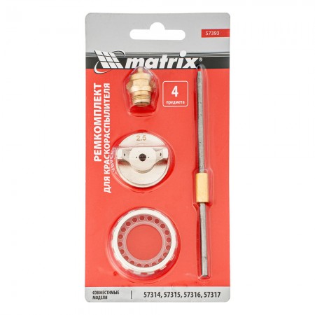 Ремкомплект для краскораспылителя 4 предмета: сопло 2,5 мм, игла, форсунка, зажим сопла Matrix (57393)