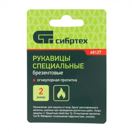 Рукавицы брезентовые огнеупорные, одинарный наладонник, 2 размер Сибртех (68127)